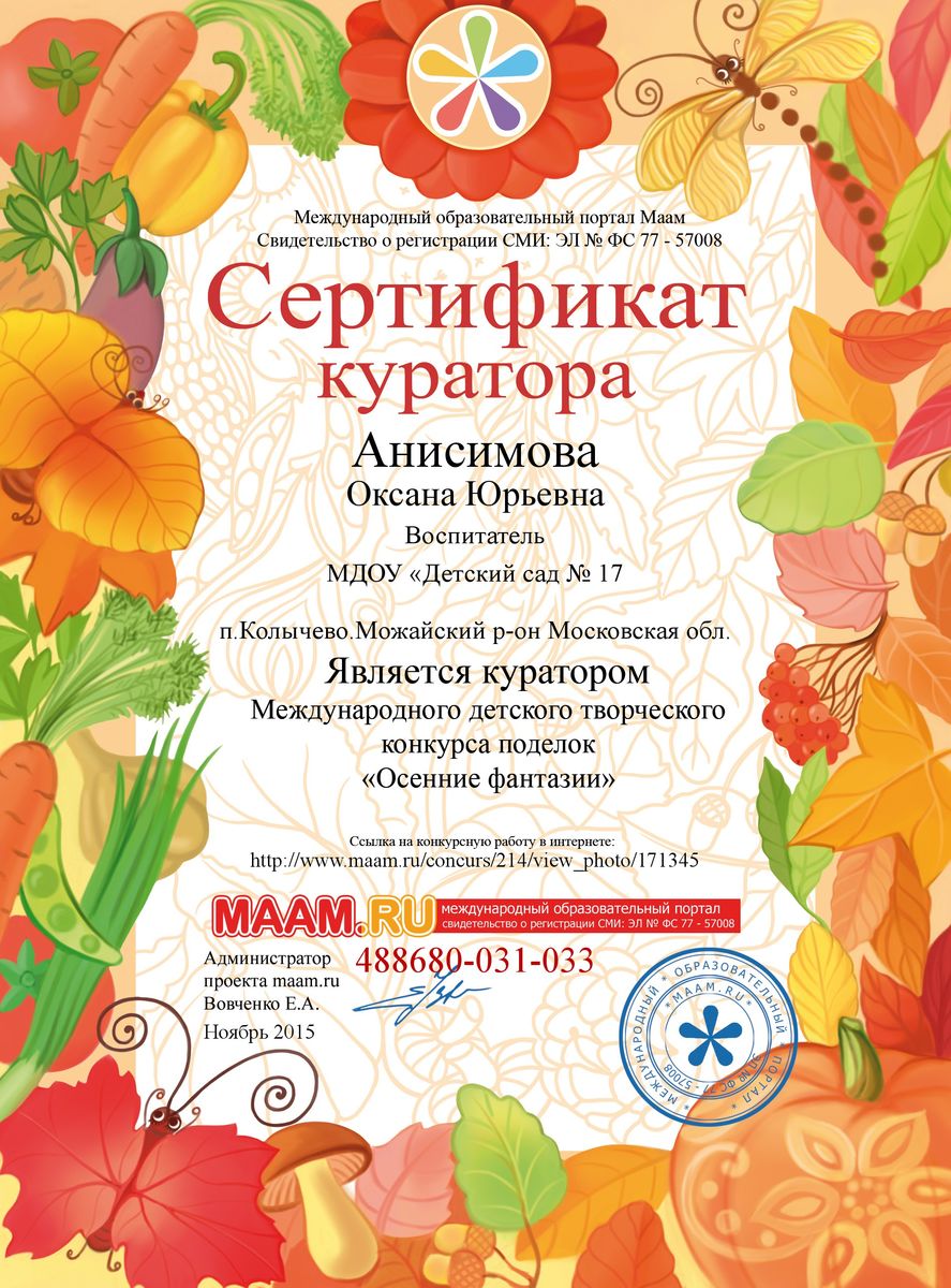 Анисимова Оксана Юрьевна-воспитатель МДОУ№3 города Можайска